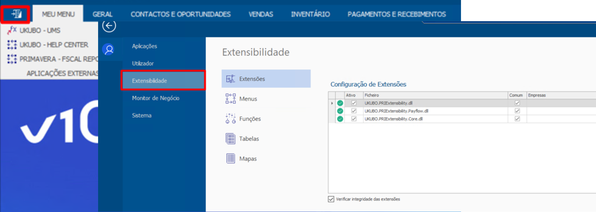 4. Após adição deverá reentrar no ERP PRIMAVERA, de forma que a extensão seja carregada devidamente.